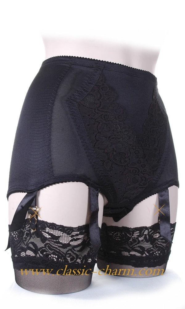 Girdlette from Cleopatra Lingerie with lace details at the front. This girdle comes with 6 reliable 24 CRT goldplated clips with a satin bow. The elastic side panels are made of powernet for light control and an optimal fit. Our best product if you lik